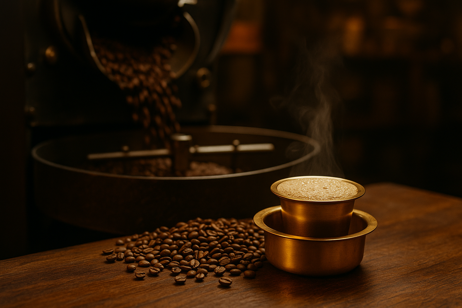 Designed for the traditional steel filter, this premium coffee blend combines coffee and chicory in perfect proportion. It brews a medium-strength cup with a smooth, balanced flavor and subtle acidity, embodying the soul of South Indian filter coffee tradition.